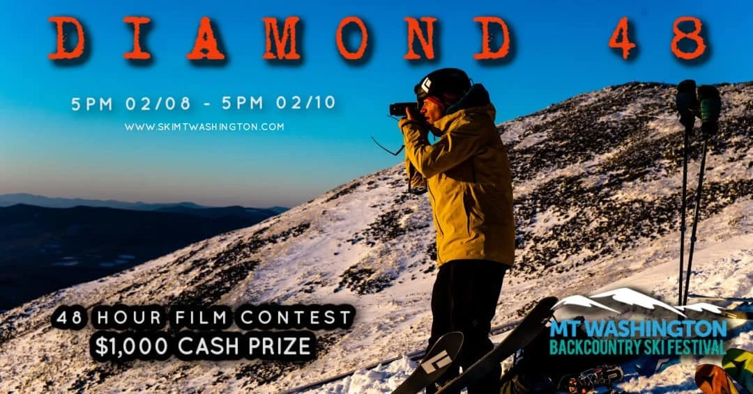 Are you the friend that always has the GoPro on and camera ready to capture epic moments in the backcountry? Take your creativity to the next level at DIAMOND 48. This unique 48-hour film contest challenges you to conceptualize, shoot, and edit a two-minute video about a topic of your choosing at the Mt Washington Backcountry Ski Festival! $50 entry free, $1,000 prize!